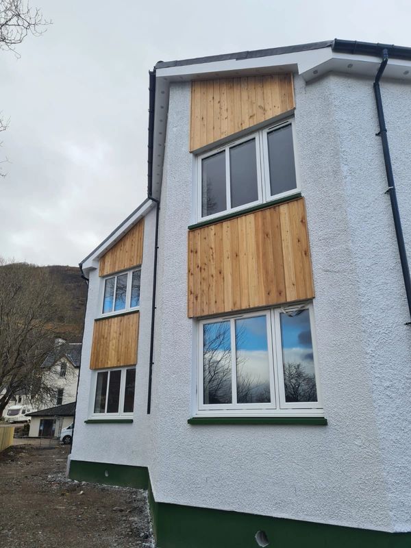 In 2020-21 Muir Decorators participated in a programme of works providing the full internal and external decoration works to this new build block of flats in Fort William. Exterior before and after pictures illustrated below.